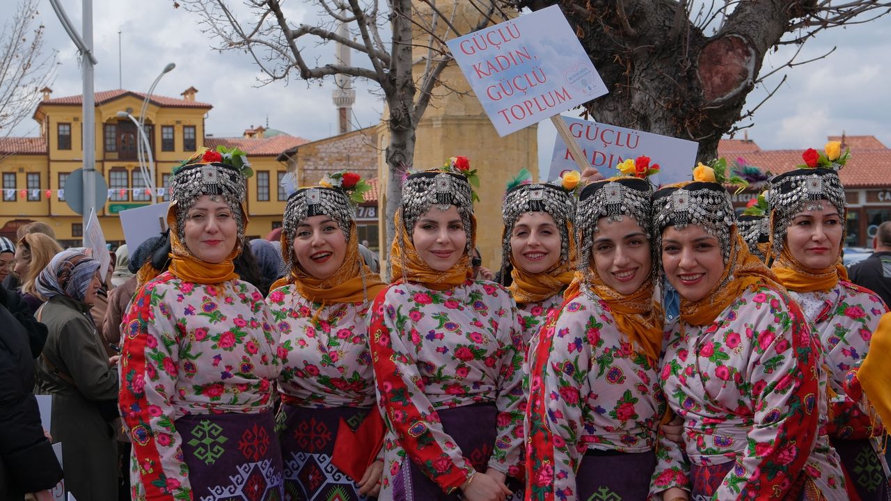 Çorum Belediyesince organize edilen festival kapsamında Hürriyet Meydanı'nda toplanan kadınlar, belediye bandosu eşliğinde Bedesten'e kadar yürüdü.
