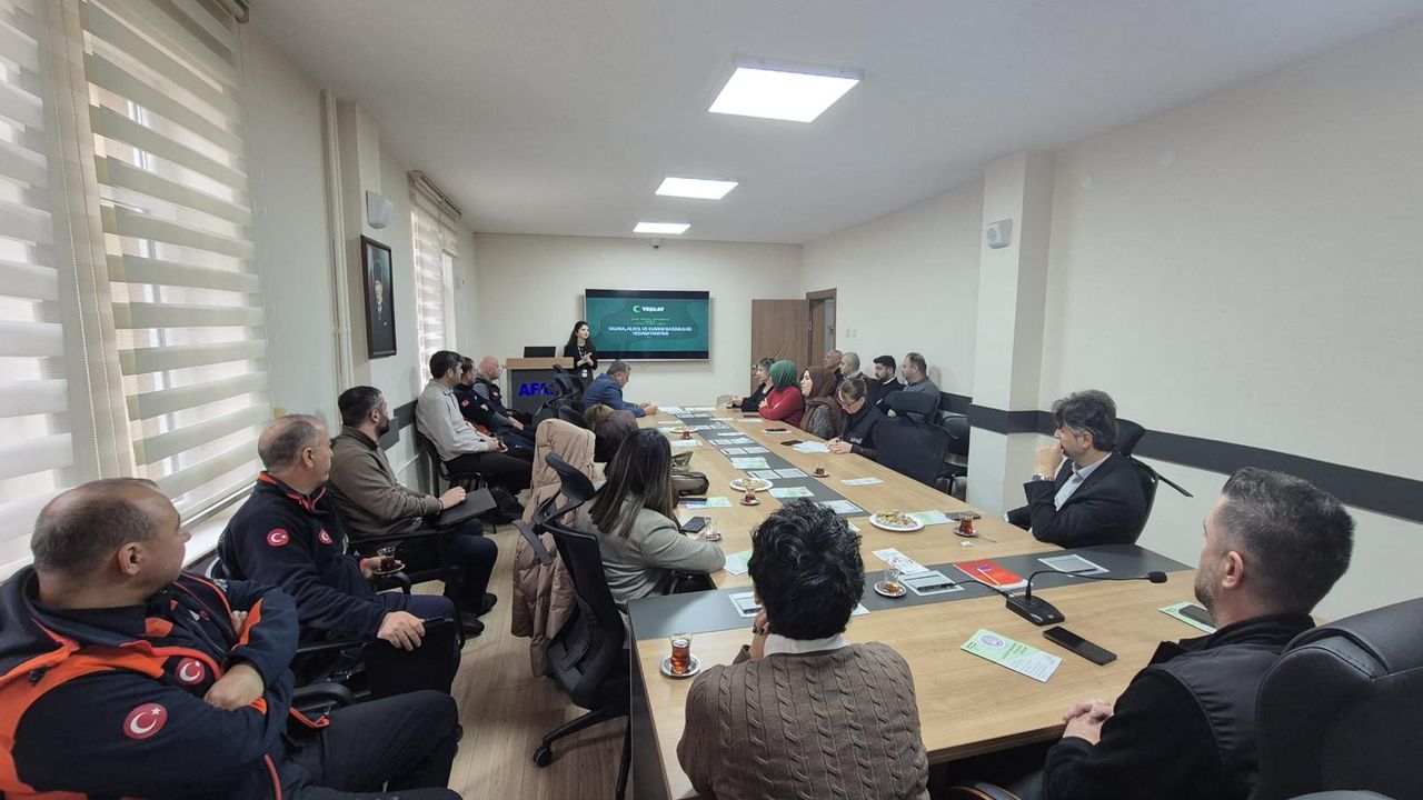 Afet ve acil durum süreçlerinde yoğun stres altında görev yapan personel için stres yönetimi, tükenmişliğin önlenmesi ve sağlıklı yaşam alışkanlıklarının sürdürülmesi konularına dikkat çekilen eğitimde, görev bilincinin yanı sıra bireysel iyilik halinin güçlü tutulmasının önemi vurgulandı.