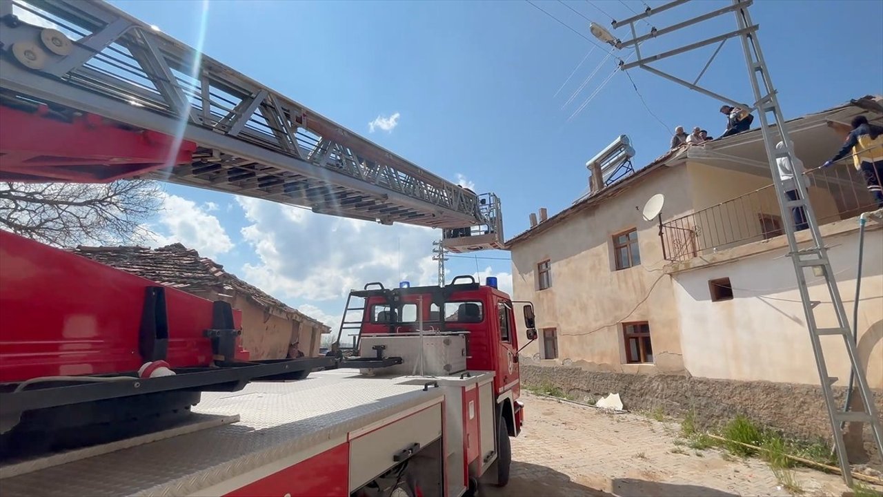 Sungurlu Belediyesi itfaiye ekipleri, itfaiye merdiveni kullanarak ulaştığı Tokgöz'ü güvenli şekilde indirerek, sağlık ekiplerine teslim etti.