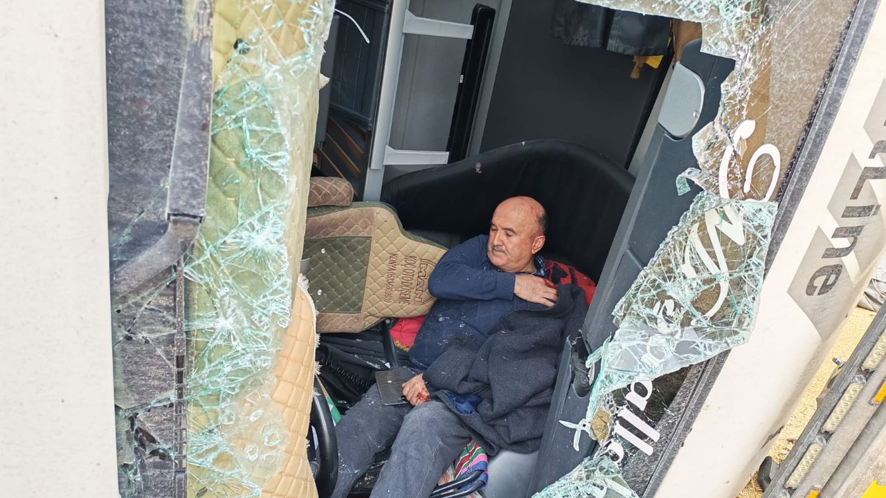 Araç içinde sıkışan sürücü, itfaiye ekiplerince çıkarılarak 112 Acil Sağlık ekiplerine teslim edildi.