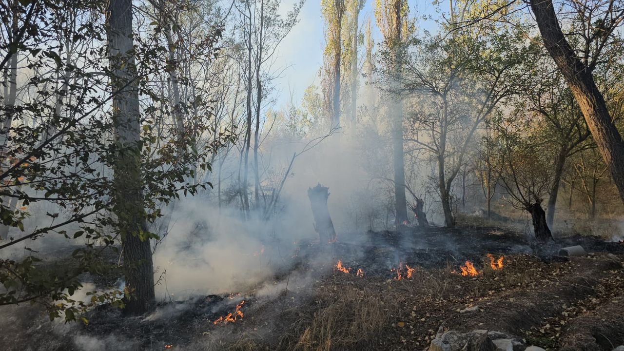 Rüzgarın etkisiyle kısa sürede büyüyen alevler çevredeki ağaçlık alana sıçradı.