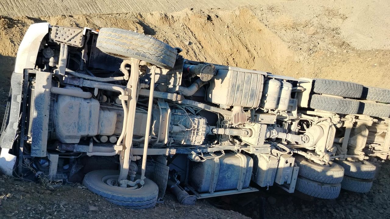 Satılmış B. idaresindeki 06 FGS 062 plakalı beton pompası, Osmancık-Dodurga kara yolu Kumbaba köyü yakınlarında sulama kanalı çalışması yaptığı sırada devrildi.