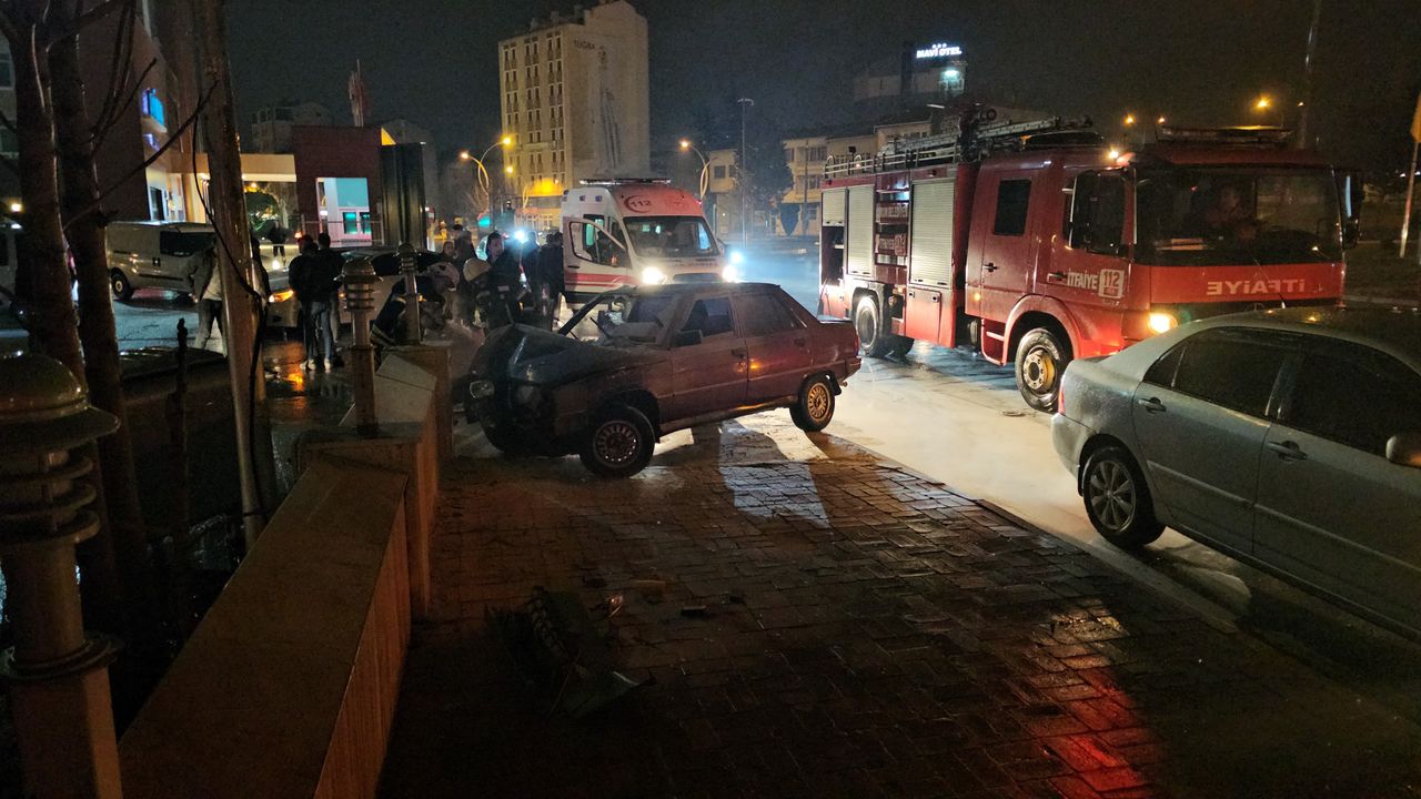 Mahmut C.B. idaresindeki otomobil, Gazi Caddesi Abide Kavşağı'nda bir akaryakıt istasyonunun çevre duvarına çarptı.