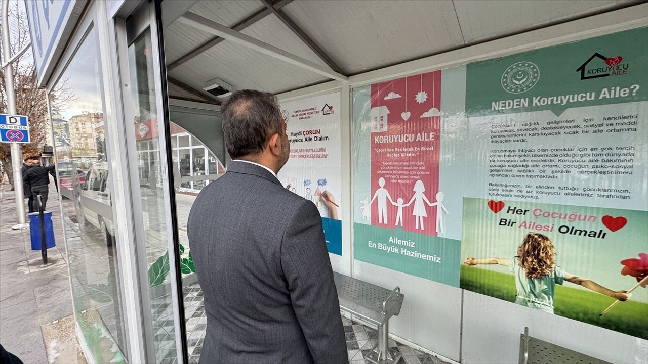 Çorum Belediyesi ile Aile ve Sosyal Hizmetler İl Müdürlüğünce durağa, koruyucu ailenin ne olduğu, nasıl başvurulduğu, kimlerin koruyucu aile olabileceği ve koruyucu ailenin önemini anlatan afişler asıldı.