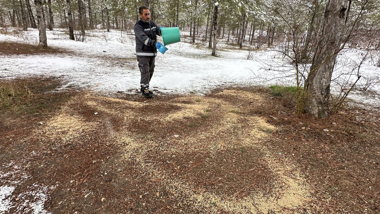 ÇORUM (AA)- Çorum Belediyesi, kış şartlarının etkisini artırdığı soğuk günlerde doğal ortamlarında yiyecek bulmakta zorlanan yaban hayvanları için doğaya yem konuldu.
