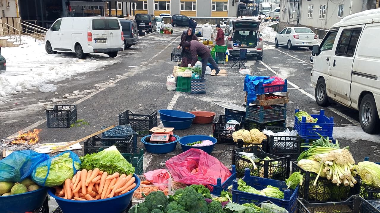 Soğuk hava nedeniyle pazar tezgahlarının bir bölümünün açılmadığı, az sayıdaki yerli üreticilerin de tezgahlarını açtığı görüldü.
