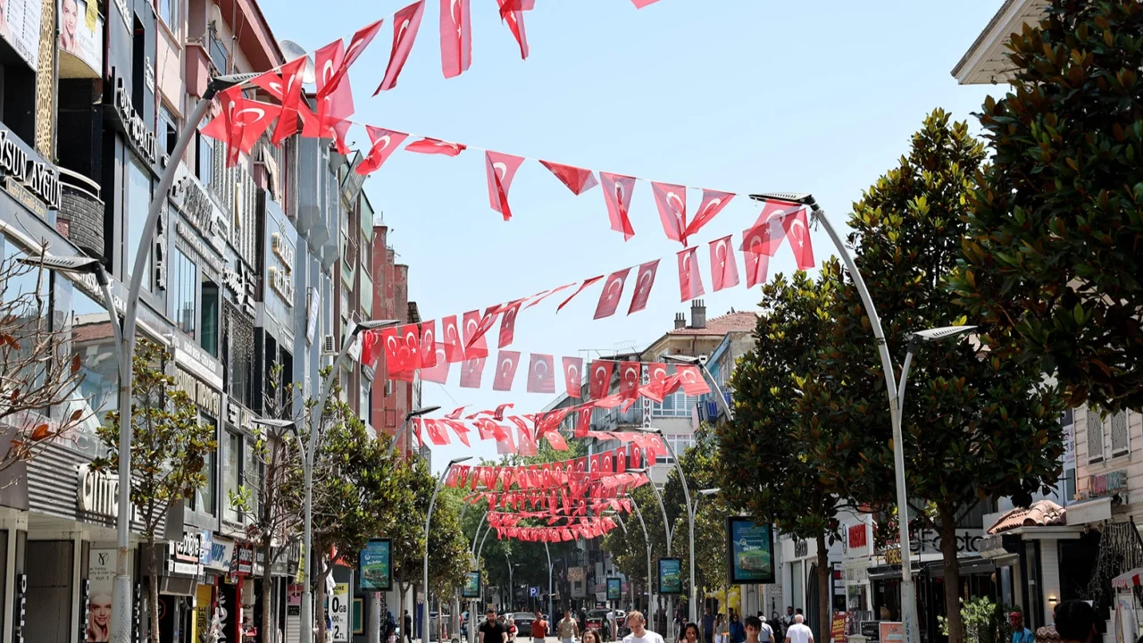 Sakarya Büyükşehir Belediyesi, Cumhurbaşkanı Erdoğan’ın çağrısı üzerine şehrin cadde ve sokaklarını ay-yıldızlı bayraklarla donattı.SAKARYA (İGFA) - Sakarya Büyükşehir Belediyesi Cumhurbaşkanı Recep Tayyip Erdoğan’ın “Türkiye’nin her sokağı, her hanesi Ay Yıldızlı bayrağımızla donatılmalıdır” çağrısı üzerine şehri al-yıldızlı Türk bayraklarıyla donattı.