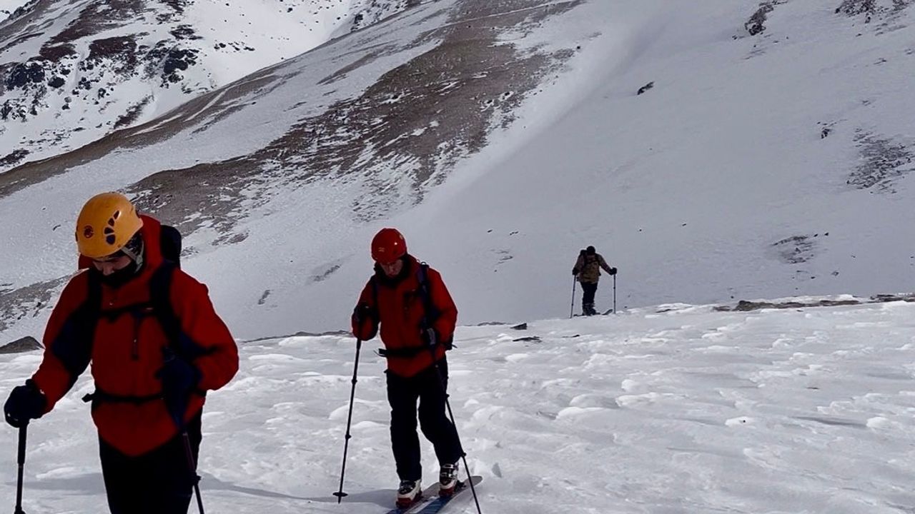 Yaklaşık 2,5 saat süren zorlu tırmanışla zirveye ulaşan sporseverler, karla kaplı sarp yamaçlar ve yüksek eğimli yerlerden kayak yaparak iniş yaptı.