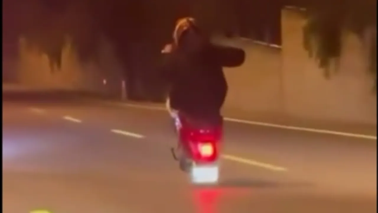 Görüntülerde, bir motosiklet sürücüsünün Ali Aygören Caddesi'nde tehlikeli akrobatik hareketler yaptığı belirlendi.