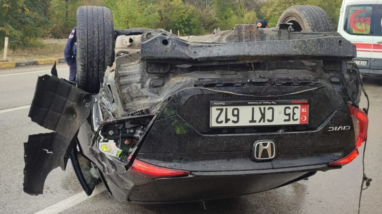 K.Ç. idaresindeki 35 CKT 612 plakalı otomobil, Karabük-Ankara kara yolu Ortaköy mevkisinde sürücüsünün direksiyon hakimiyetini kaybetmesi sonucu trafik işaret levhasına çarptı, ardından devrildi.