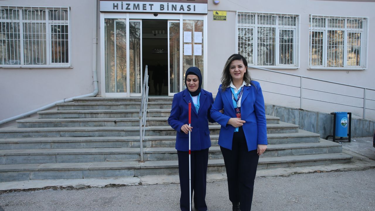 Belediyede iki hafta önce santral görevlisi olarak çalışmaya başlayan 36 yaşındaki doğuştan görme engelli Kaytazoğlu'nun en büyük yardımcıları mesai arkadaşları oldu.