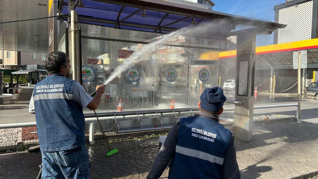 Ulaştırma ve Temizlik İşleri Müdürü Koray Sivrikaya, toplu taşıma alanlarında hijyenin önemine dikkat çekerek, “Duraklarımızı düzenli olarak temizliyor, özellikle temas yüzeylerini dezenfekte ederek vatandaşlarımız için güvenli bir ortam sağlamaya çalışıyoruz. Bazı duraklarda camların kırıldığına, sprey boyalarla yazılar yazıldığına ve afiş-broşür asıldığına şahit oluyoruz. Gerekli tamiratları yapıyoruz ancak vatandaşlarımızdan ricamız ortak kullanım alanlarımızı daha düzenli ve tertipli kullanırsak Kdz. Ereğli’ye yakışan bir görünümü sağlamış oluruz. Çalışmalarımızı periyodik olarak sürdüreceğiz, ihtiyaç duyulan noktalarda ilave temizlik ekiplerini görevlendireceğiz” dedi.