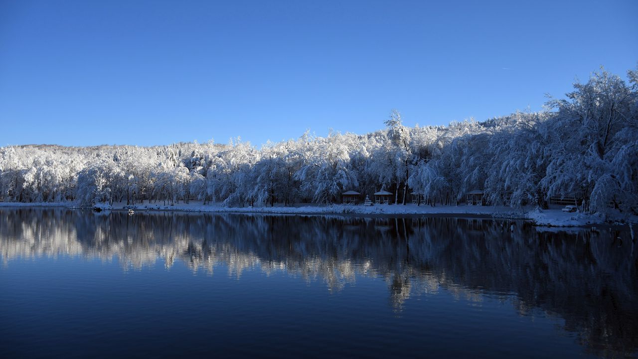DÜZCE (AA) - Düzce'nin Kaynaşlı ilçesinde kar yağışının ardından Korugöl Tabiat Parkı beyaza büründü.