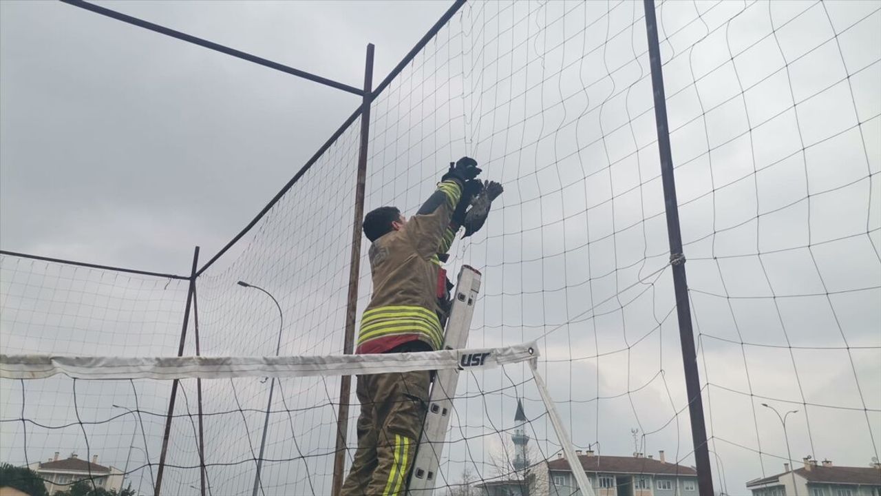 DÜZCE (AA) - Düzce'de basketbol sahasında fileye dolanan karga, itfaiye ekiplerince kurtarıldı.