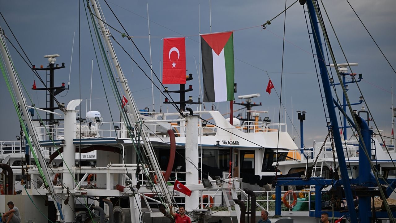 Konuşmaların ardından bölgedeki hava muhalefeti nedeniyle denize açılamayan balıkçılar, teknelerinin sirenlerini çalarak ellerinde Türkiye ve Filistin bayraklarıyla alanı dolduran kalabalığı selamladı.