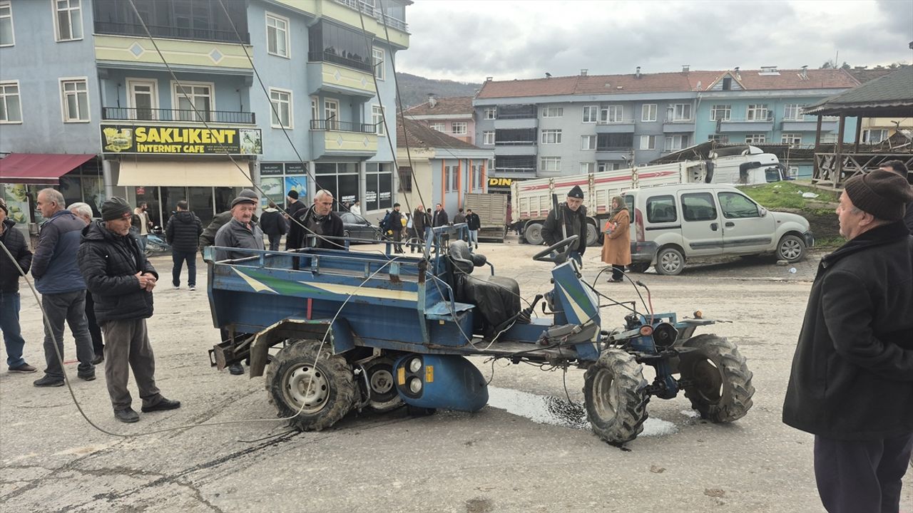 Atatürk Mahallesi Pazaryeri mevkisinde İ.K'ye ait park halindeki mıcır yüklü tırın freni boşaldı. Hareket etmeye başlayan tır, park halindeki 4 araca, ardından bir marketin duvarına çarptı.
