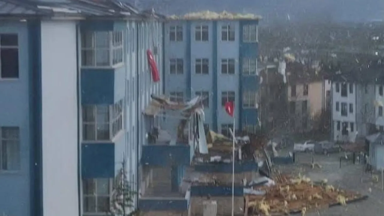 Düzce'de etkili olan şiddetli rüzgâr nedeniyle bir lisede çatı hasarı meydana geldi.