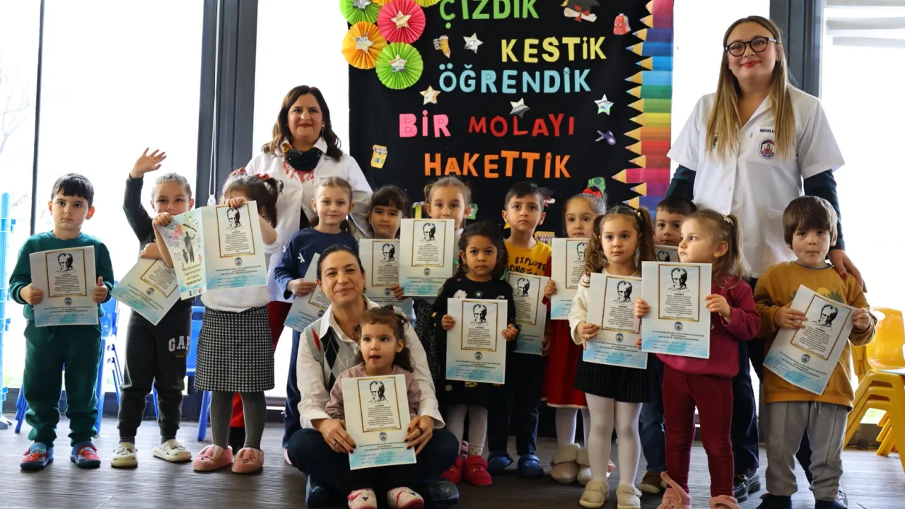 İZMİR (İGFA) - Efes Selçuk Belediyesi, Kadın ve Aile Hizmetleri Müdürlüğü'ne bağlı İsabey Çocuk Bakım Yurdu ile 14 Mayıs ve Belevi Şen Çocuk Gelişim Merkezleri'nde ücretsiz eğitim alan çocuklara Atatürk görselli gelişim raporları dağıttı. Raporda, 'Okuluma koşuyorsam, özgürce okuyorsam senin sayende: Teşekkürler Atam!' ifadesi yer aldı.