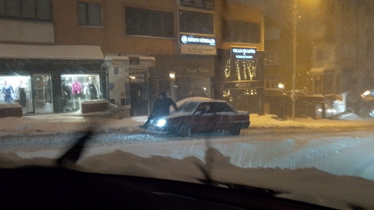 Meydanbaşı yokuşunda ise bazı araçlar kaldı. Bir vatandaşın aracın ön kaportasına oturarak ağırlık yaptığı görüldü.