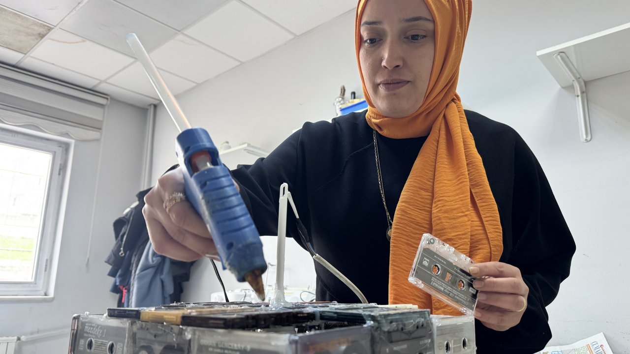 Dekoratif el sanatları eğitmeni Hande Okuyucu da geçmişte kullanılan ve evinde atıl halde bulunan müzik kasetlerini değerlendirmek istedi.
