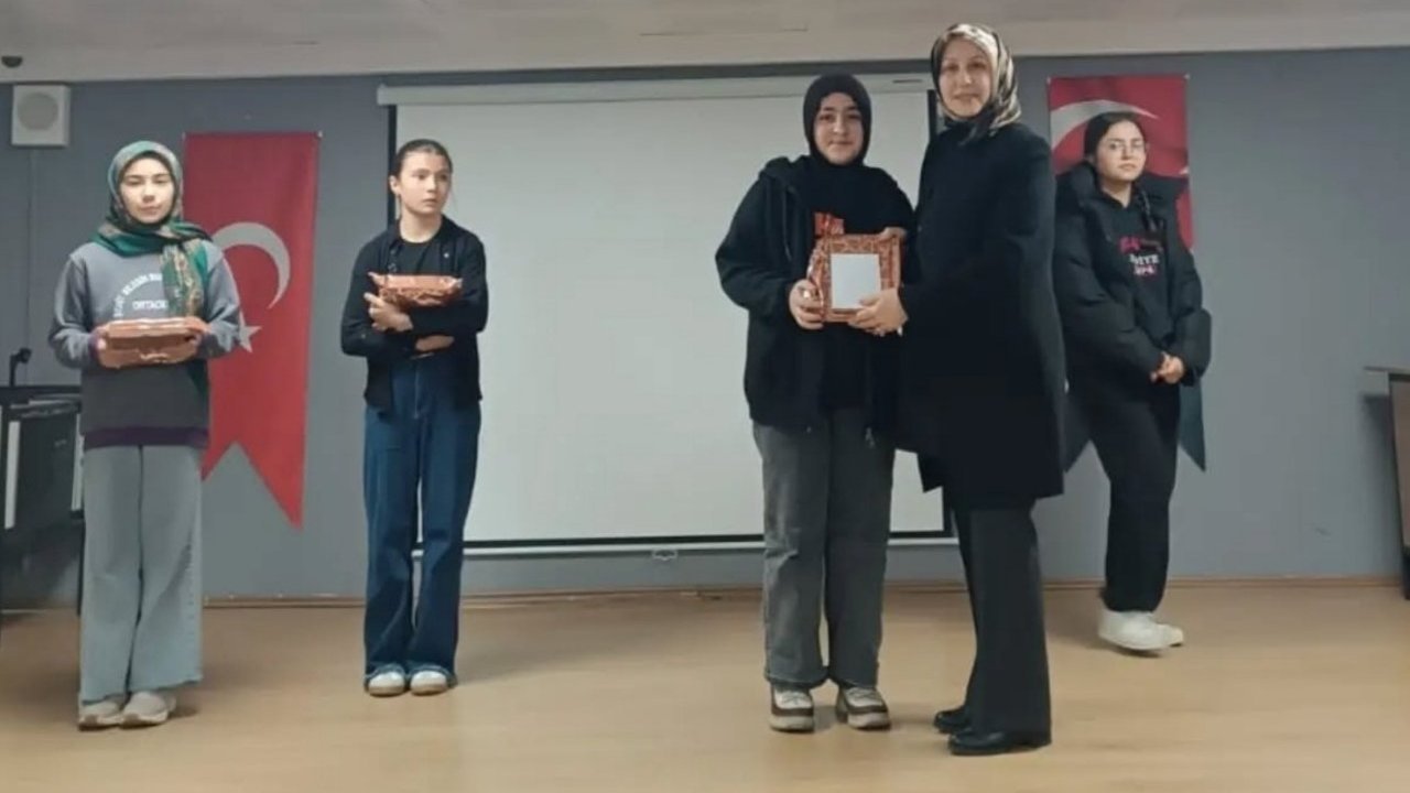 Ortaokul ve lise öğrencilerinin katıldığı yarışmada dereceye girenlere çeşitli hediyeler verildi.