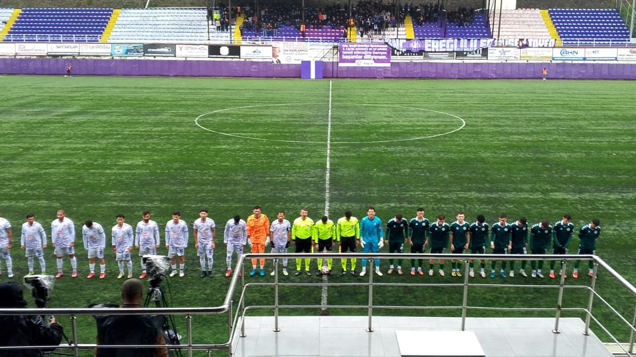Ereğli Belediyespor kalecisi son bölümlerde net gollere geçit vermezken maç 1-1 beraberlikle tamamlandı.