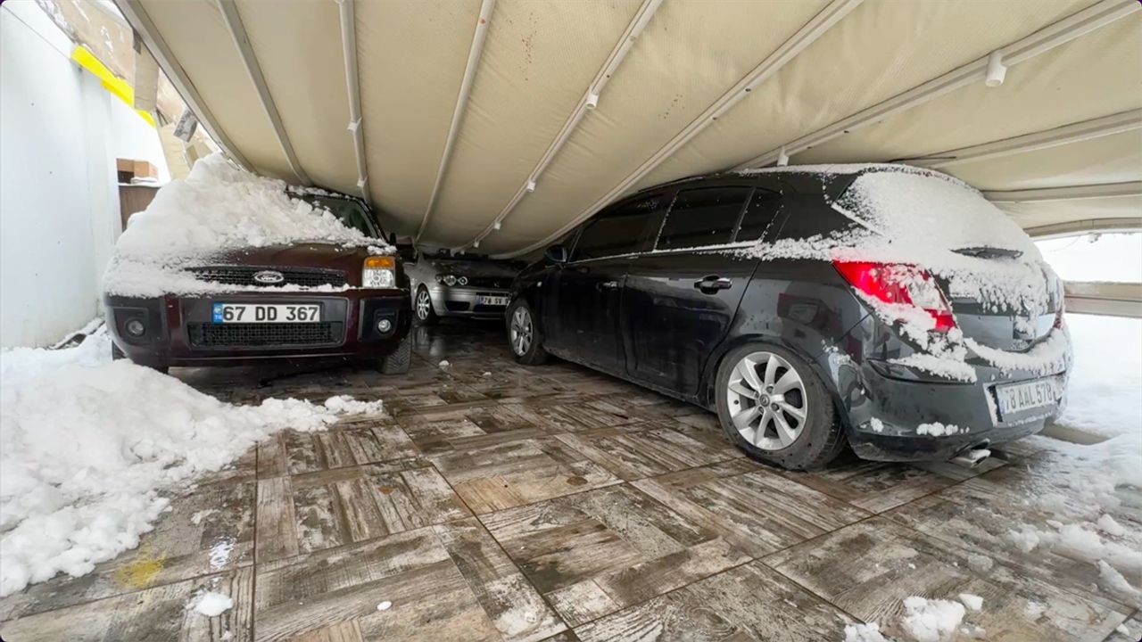 Karabük'ün Safranbolu ilçesinde yoğun kar yağışı nedeniyle garaj çatısının çökmesi sonucu 3 otomobilde hasar oluştu.