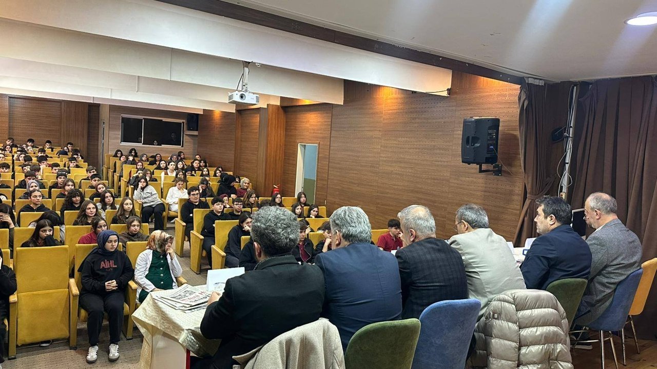 Alaplı Anadolu İmam Hatip Lisesi Fen ve Sosyal Bilimler Proje Okulu konferans salonunda gerçekleştirilen programda; Alaplı Faal Gazeteciler Derneği Başkanı Metin Mudanya,