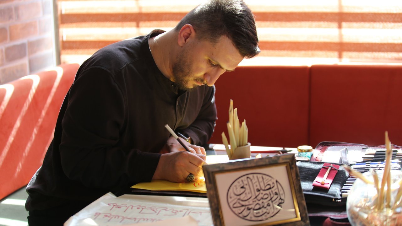 Siyaset Bilimi ve Kamu Yönetimi Bölümü 4. sınıf öğrencisi İhsan Kapanşahin de kaligrafiye lisede hobi olarak başladığını söyledi.