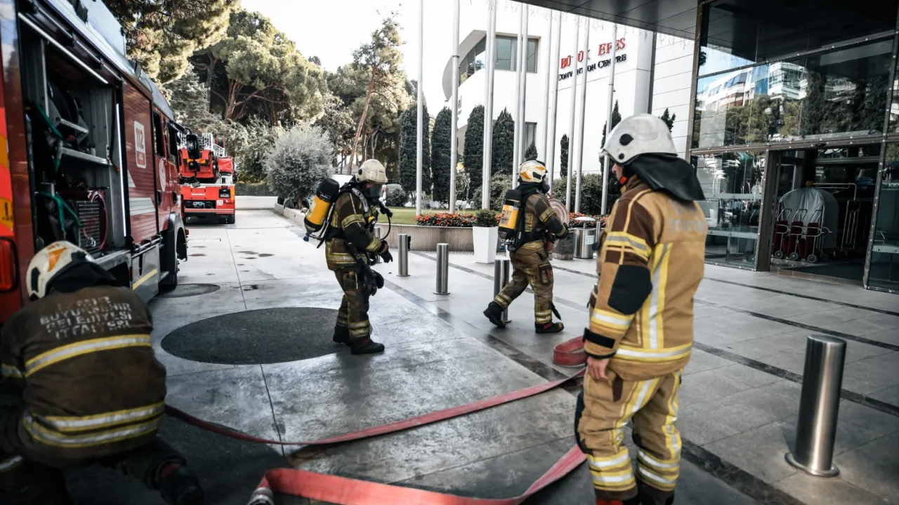 İzmir'in Konak ilçesinde bulunan Swissotel Büyük Efes'te İzmir İtfaiye Dairesi Başkanlığı ekipleri, yangın ve tahliye tatbikatı gerçekleştirildi. Tatbikat senaryosuna göre otelin toplantı ve konferans salonunda yangın çıktı. Alevler itfaiye ekipleri tarafından kısa sürede kontrol altına alınırken, binada mahsur kalan bir yurttaş güvenli bir şekilde tahliye edildi.