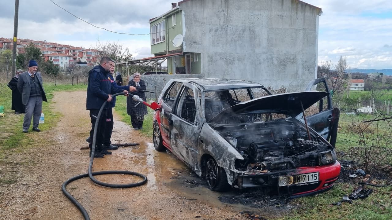 Yangında otomobil tamamen yanarak kullanılmaz hale geldi.