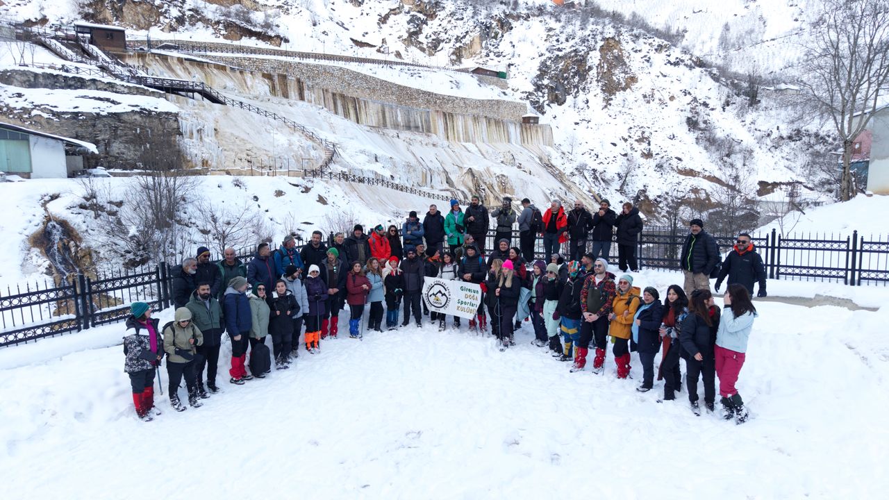 GİRESUN (AA) - Giresun Doğa Sporları Kulübünce (GİDOSK) Dereli ilçesindeki Göksu travertenlerine kış yürüyüşü etkinliği yapıldı.