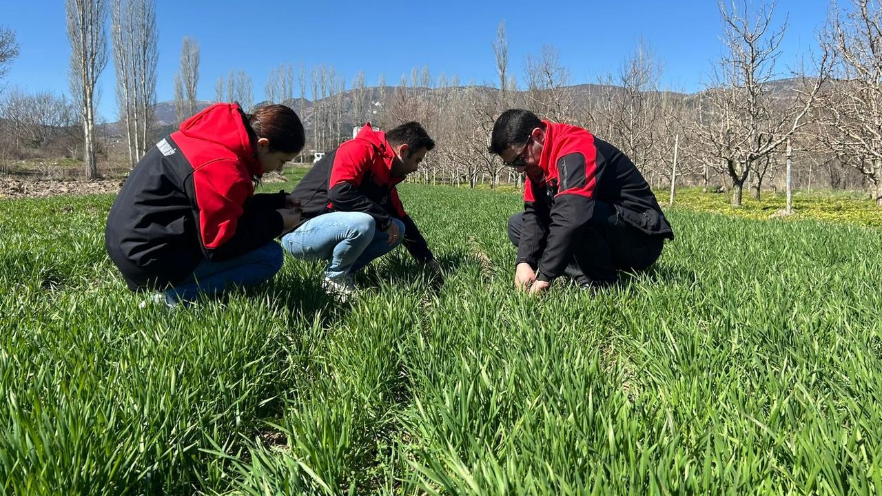Göynücek İlçe Tarım ve Orman Müdürlüğü ekiplerince hububat ekili alanlarda yapılan incelemede, buğdayın gelişim durumu değerlendirildi.