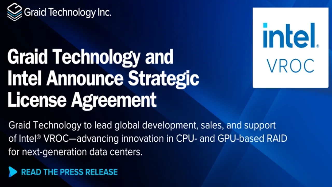 Graid Technology, RAID inovasyonunu hızlandırmak için Intel Corporation ile stratejik lisans anlaşması imzaladı. Stratejik iş birliği, kurumsal RAID pazarında inovasyonu hızlandırması ve dünya genelindeki veri merkezi müşterileri için dönüştürücü sonuçlar sunacak.