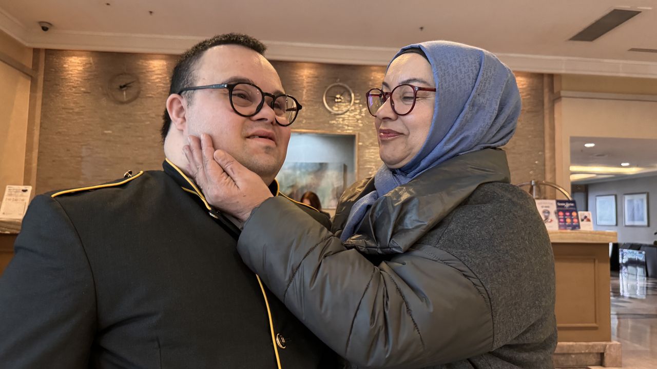 'Özel eğitimlerle Emre'mi bu seviyeye getirdim. Özel eğitim uygulama okulu mezunu. Down Sendromlular Derneğimiz var İstanbul'da. İş koçu geldi, Emre'mi buraya alıştırdı. Otel de istemiş. Allah razı olsun. Onlara çok teşekkür ediyoruz. Gerçekten minnettarım. Emre burada 9 senedir çalışıyor. Şu anda işinden çok memnun. Her sabah kalkar, 'İşime gideceğim' diye heyecanla hazırlanır.'
