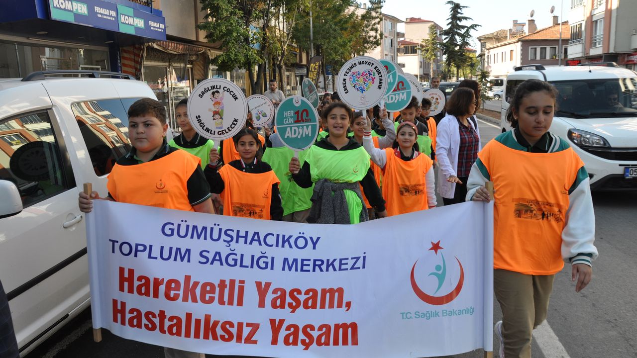 Gümüşhacıköy İlçe Toplum Sağlığı Merkezi Başkanlığı tarafından organize edilen etkinlikte Mehmet Paşa Ortaokulu öğrencileri ve öğretmenleri, okuldan Cumhuriyet Meydanı'na kadar yürüyüş gerçekleştirdi.
