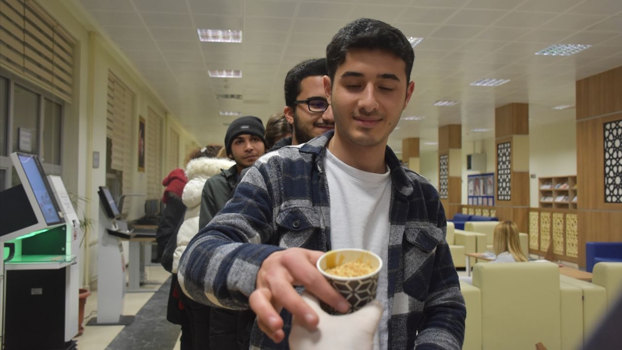 Ömer Hamza Ayhan da kütüphanede ders çalıştıklarını belirterek, 'Rektör hocamız da bize herle ikram etti. Bu soğukta içimizi ısıttı.' diye konuştu.