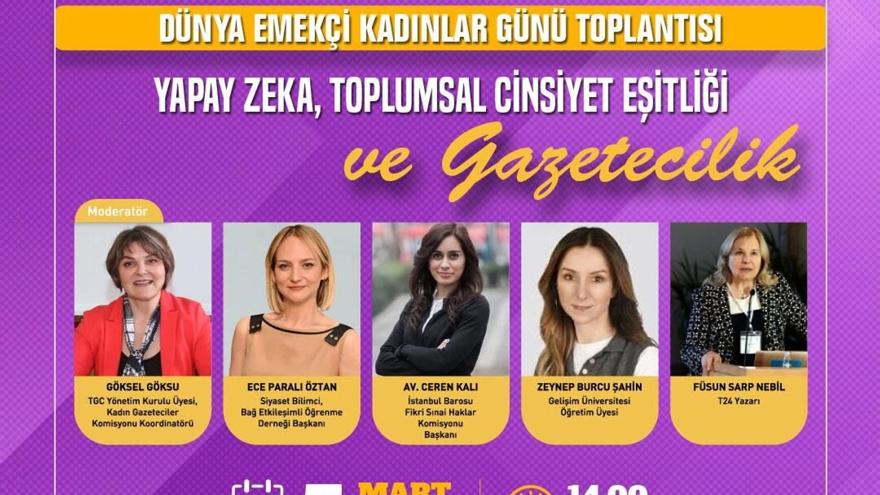 Dünya Emekçi Kadınlar Günü kapsamında Türkiye Gazeteciler Cemiyeti (TGC) Kadın Gazeteciler Komisyonu, 5 Mart 2026 Perşembe günü yapay zekanın toplumsal etkilerinin ele alınacağı bir toplantı düzenliyor.