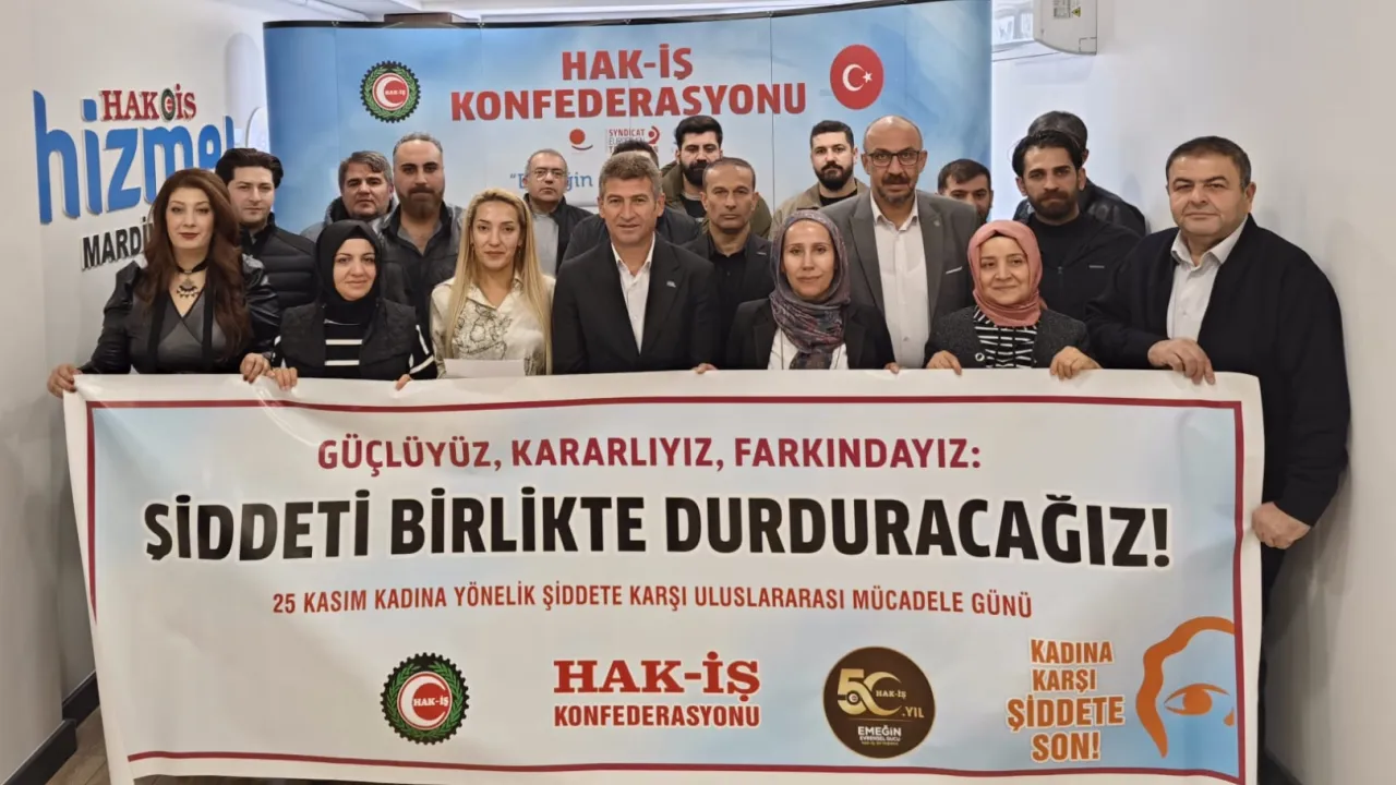 HAK-İŞ Konfederasyonu, 25 Kasım Kadına Yönelik Şiddete Karşı Uluslararası Mücadele Günü kapsamında Türkiye'nin 81 ilinde eş zamanlı basın açıklamaları düzenledi. Mardin'deki eylemde, kadına yönelik şiddete karşı 50 yıllık kararlı duruş bir kez daha vurgulandı.