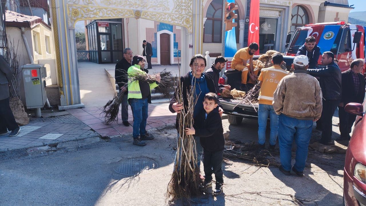 Fidan dağıtımına vatandaşlar yoğun ilgi gösterdi.