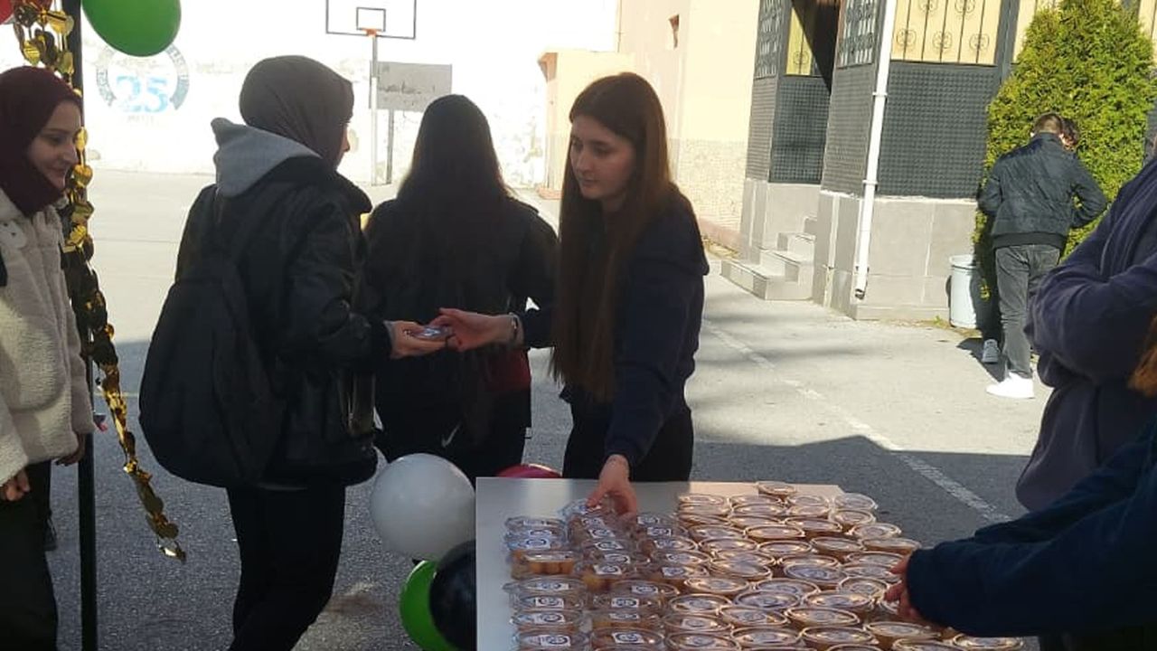 Okul bahçesinde kurulan stantta dağıtılan iftarlık lokma tatlılarına öğrenciler büyük ilgi gösterdi.