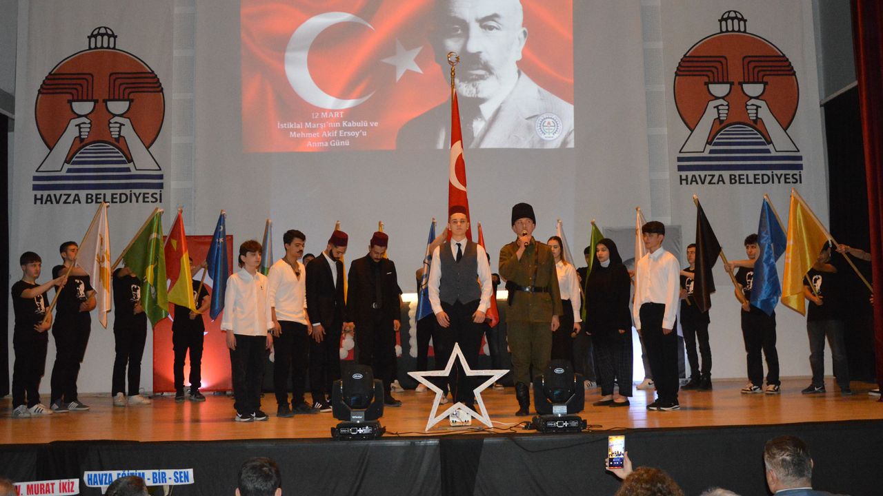 Havza Belediye Kültür Merkezi'nde Havza Mesleki ve Teknik Anadolu Lisesi tarafından düzenlenen programda 12 Mart İstiklal Marşı'nın kabulünün 105. yılı kutlanarak milli şair Mehmet Akif Ersoy anıldı.