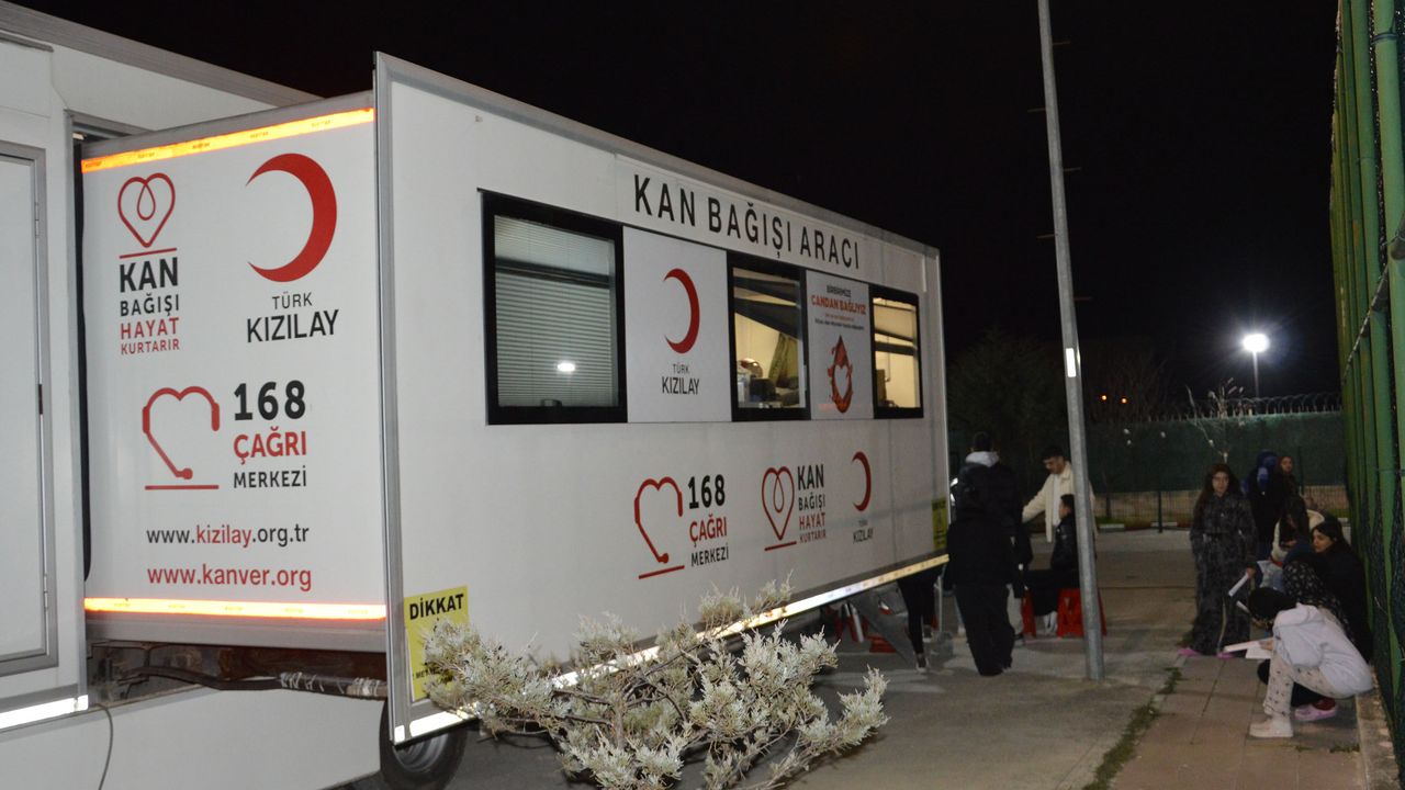 Öğrenci yurdu bahçesinde konuşlandırılan kan bağış aracında 20.00 ila 23.30 saatleri arasında kan bağışı çalışması yapıldı.