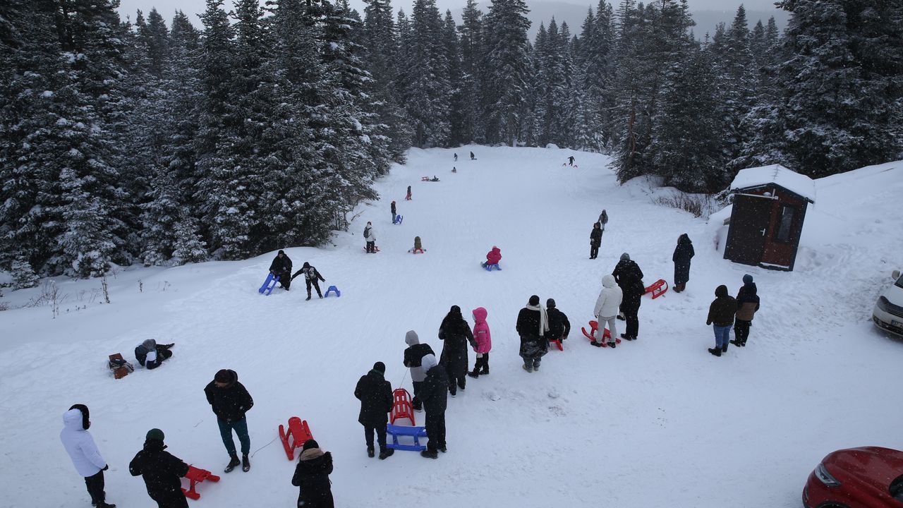 Burada doğal güzellikler arasında yürüyüş imkanı bulan ziyaretçiler, kayak, snowboard ve kızakla kayarak keyifli vakit geçiriyor.