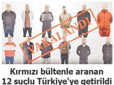 02.12.2025 : 12 kaçak suçlu daha yakalanıp getirildi! İçişleri Bakanı Ali Yerlikaya, kırmızı bültenle aranan 12 suçlunun Gürcistan, Almanya, Avusturya ve Fransa’dan Türkiye’ye getirildiğini bildirdi.