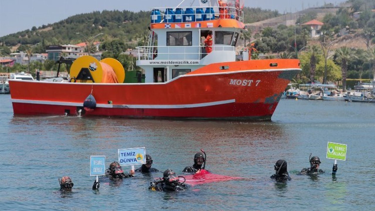İzmir'in Aliağa ilçesinde ‘Dünya Çevre Günü’ etkinlikleri kapsamında ‘Temiz Çevre Temiz Dünya’ temalı deniz temizliği yapıldı.İZMİR (İGFA) - Aliağa Kaymakamlığı İlçe Tarım ve Orman Müdürlüğü organizasyonunda balıkçı barınağında gerçekleştirilen etkinlikte Aliağa Sahil Güvenlik ve İzmir Deniz Polisi Su Altı ekipleri dip temizliği yaptı.