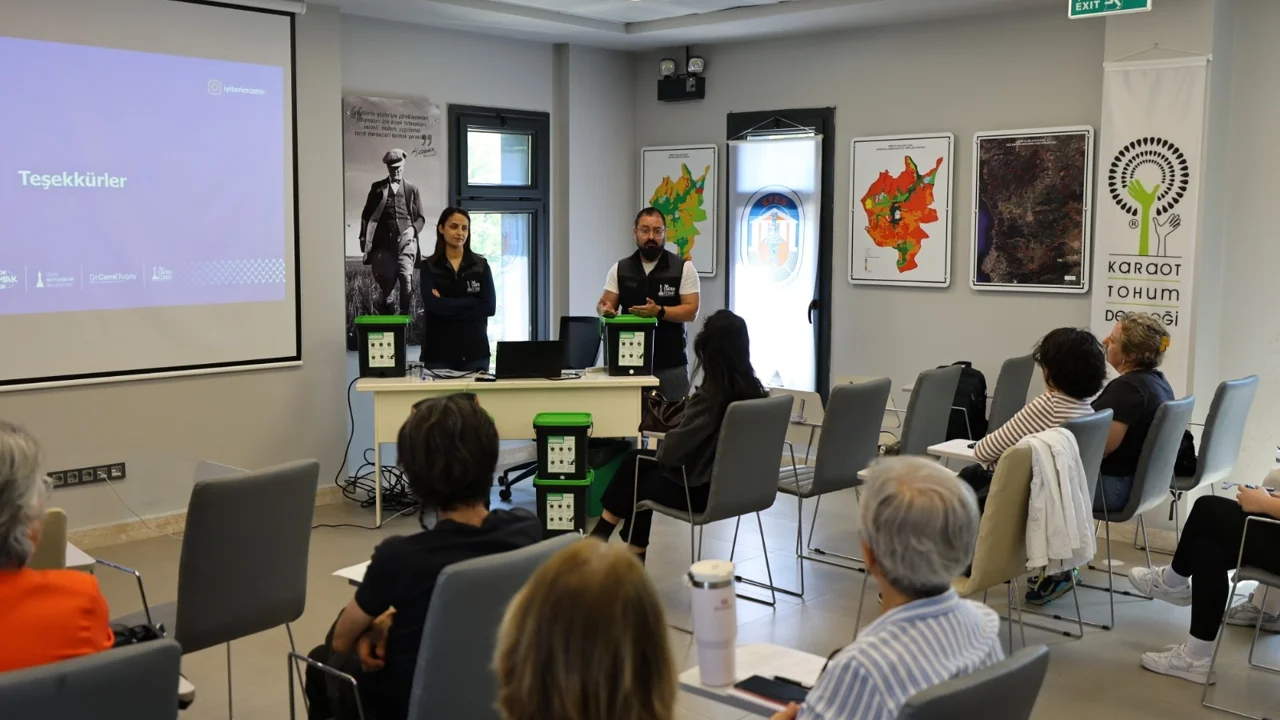 İZMİR (İGFA) - Kimya Mühendisi Merve Bodur Keskin tarafından verilen eğitimde, mutfak atıklarından kompost gübre üretiminin yöntemleri katılımcılarla paylaşıldı.