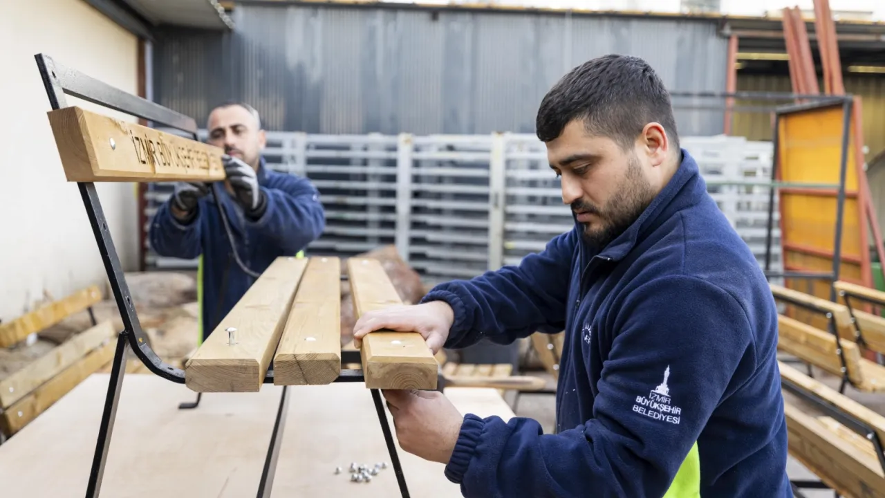 İZMİR (İGFA) - İzmir Büyükşehir Belediyesi, kentin sosyal donatı alanlarında kullanılan ekipmanları kendi bünyesinde üreterek yenilemeye devam ediyor.