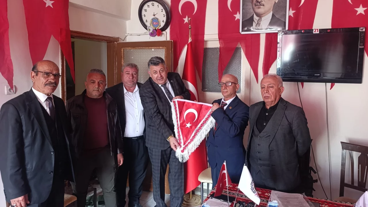 Seçimler sonrasında genel başkanlığa seçilen Altmışkara 'ya Genel Başkan baş danışmanı Durgut Türk bayrağı hediye etti.