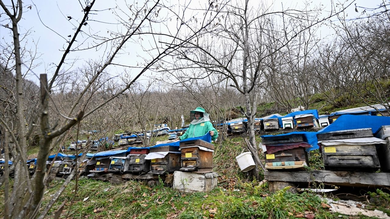 DÜZCE (AA) - ÖMER ÜRER - Düzce'nin Yığılca ilçesinde arıcılık yapan babasından 45 yıl önce mesleği öğrenen Hacer Uğurlu, son yıllarda modern arıcılık eğitimleri ve devletten aldığı hibe destekleriyle kovan sayısını 10'dan 300'e çıkardı.